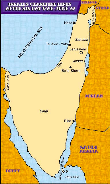 The governments of Jordan, Iraq, Saudi Arabia, Syria, and Lebanon moved their forces toward the Israeli border. Israel responded to the growing threat and in 6 days captured the Sinai, the #WestBank (Judea and Samaria), #Gaza, and the #GolalHeights