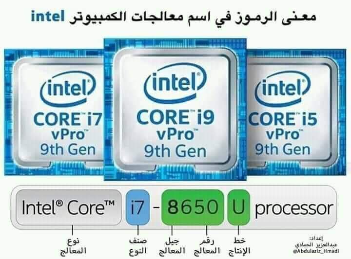 كل حرف أو حرفين بيكون له معنى أو دلاله علي نوعيه البروسيسور .انا اليوم بوضحلك هذا عشان لما تيجي تشتري لاب توب تكون عارف الفرق