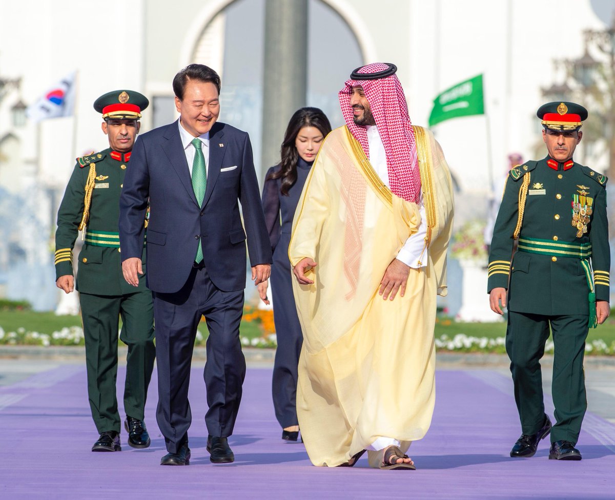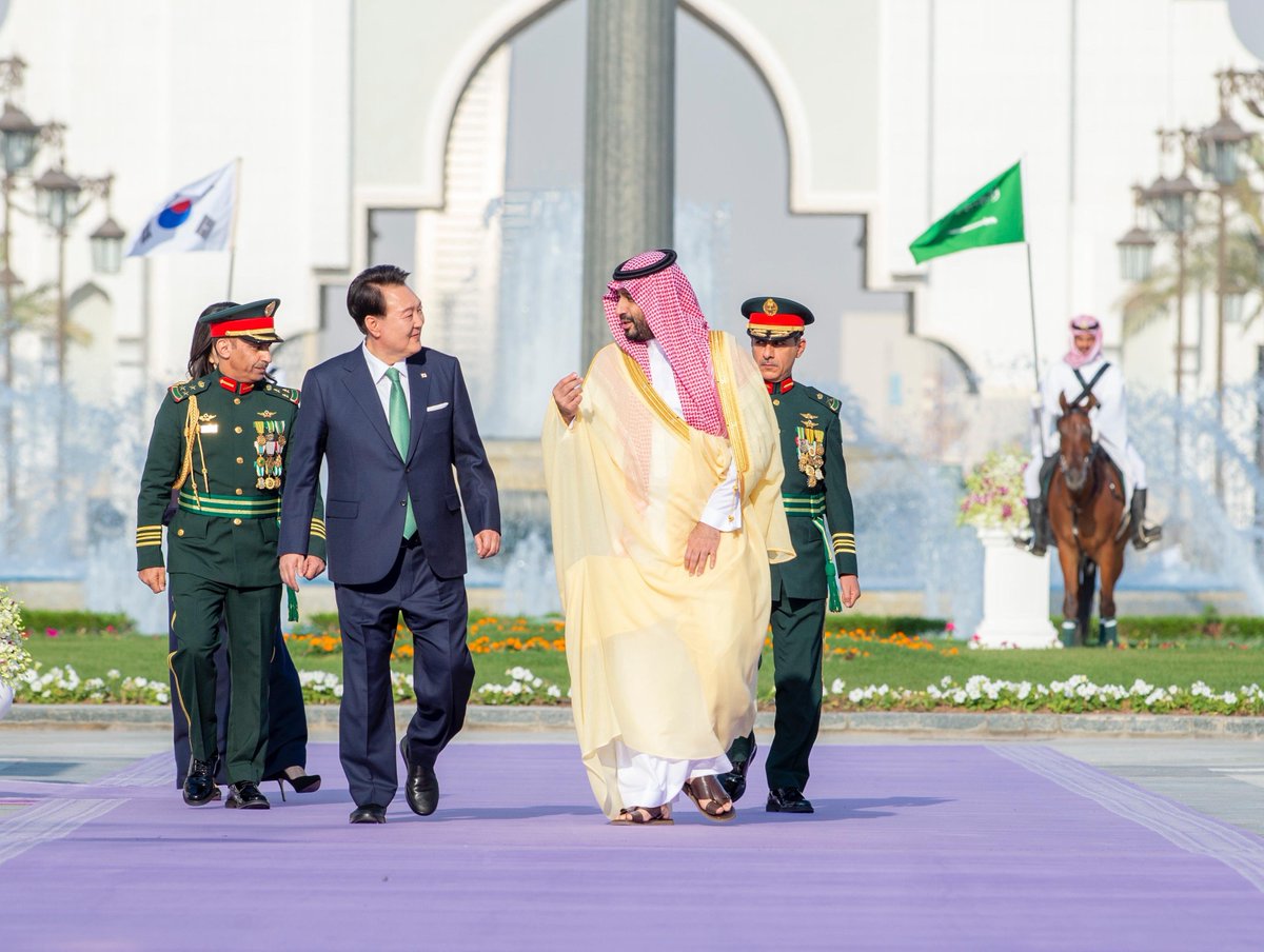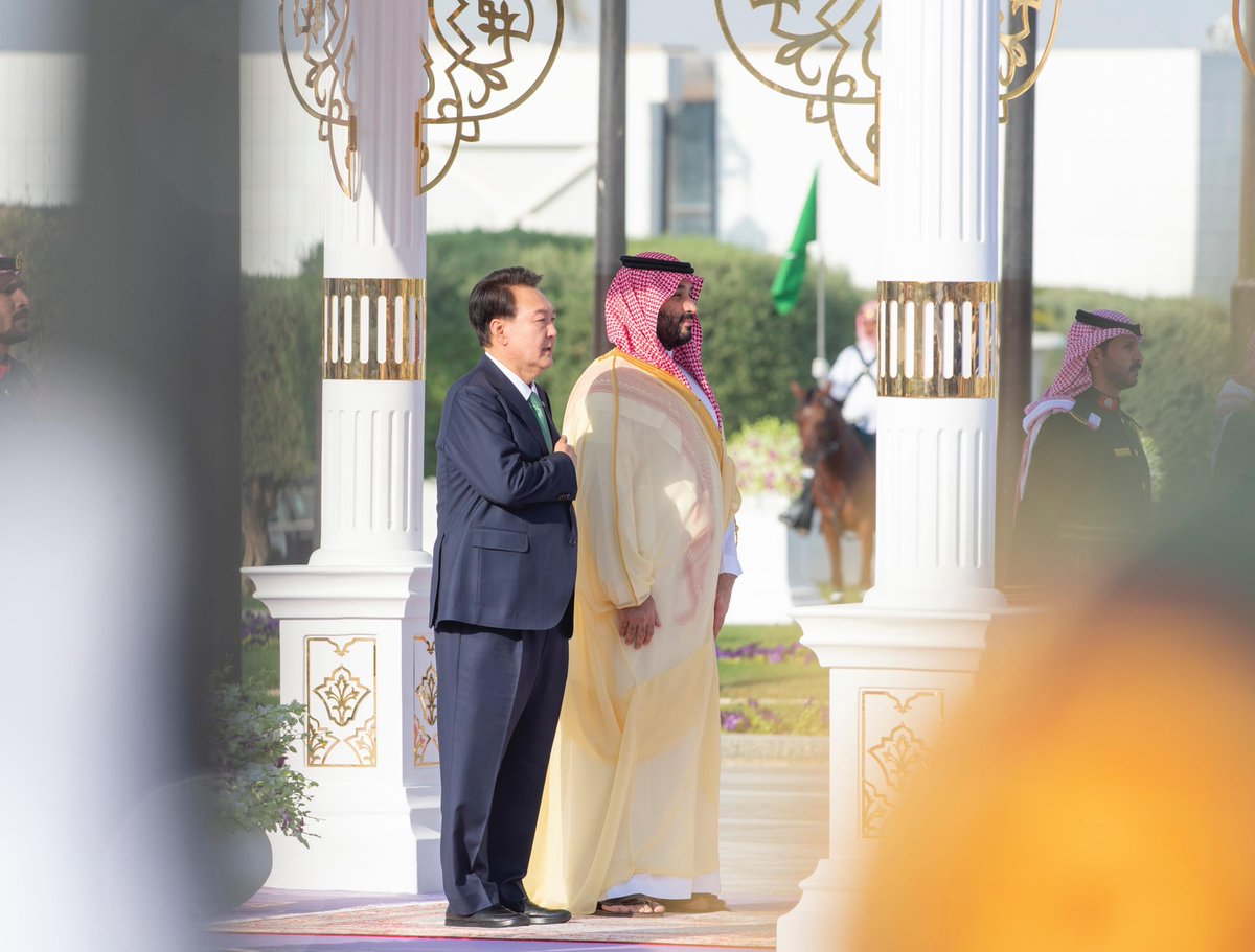 سمو #ولي_العهد يستقبل في قصر اليمامة في الرياض، فخامة رئيس جمهورية #كوريا، وقد أجريت مراسم استقبال رسمية لفخامته.