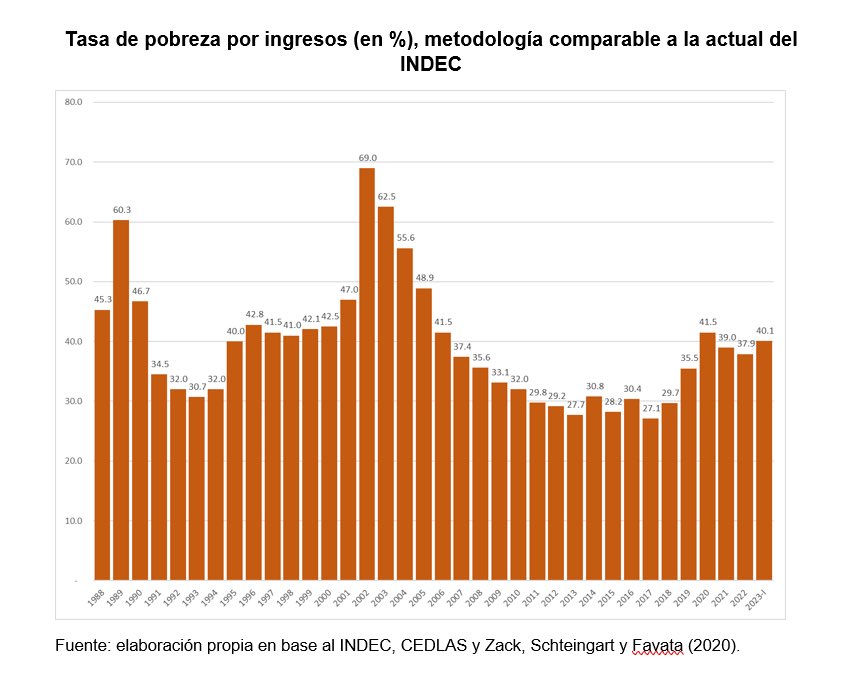 Si bien la pobreza subió mucho mucho desde 2017, cuando estaba cerca de 25% y hoy está en 40 puntos. Pero nada que ver con los casi 70 que tuvimos en el 2002 (medido con la vara actual del INDEC, en 2002 tuvimos esa cifra, no 57%).