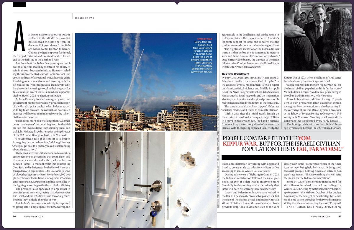 نشرت مجلة نيوزويك في عددها الأخير تحقيقا مطولا تحت عنوان: "هل يستطيع بايدن احتواء الحرب .. وكبح جماح إسرائيل؟" تناولت في الموضوع الرئيسي: