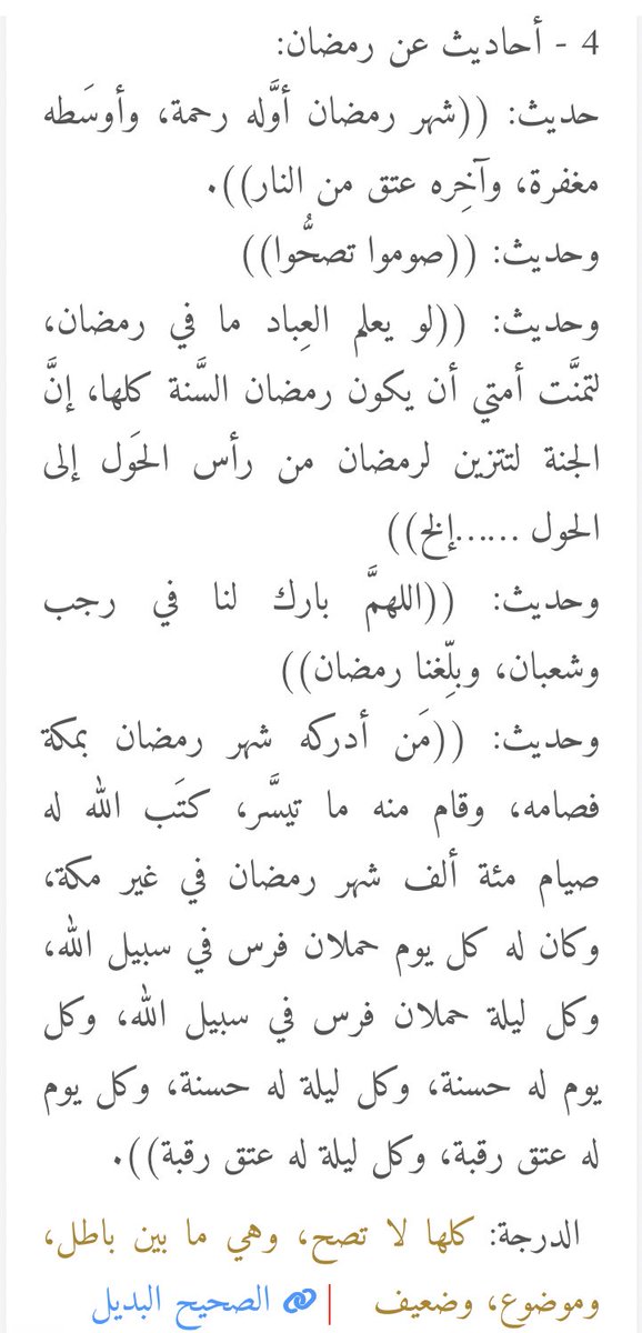 أحاديث ضعيفة وموضوعة مازال البعض يتناقلها ظناً بصحتها وثبوتها..وبعض الفقهاء يرون العمل بها من باب الترغيب😃