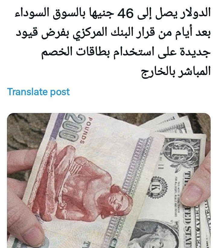 الحركة العبيطة اللى عملها البنك المركزى بالايقاف التام لاستخدام كروت خصم حسابات العملاء بالجنية للشراء من الخارج، وتحديد حد اقصى لاستخدام الفيزا كارد للدفع بالدولار تسبب باثر جانبى ورفع سعر الدولار بالسوق السوداء من ٣٩ جنية الى ٤٦ جنيه ، لان ناس كثير بتعتمد فى شغلها على دفع اشتراكات وشراء منتجات من الخارج ودة هايؤدى الى صعوبة اكبر فى اجراء عملية تخفيض قيمة الجنيه وهايؤدى الى حدوث فرق اخر بالسعر بين السعر الرسمى وسعر السوق السوداء حتى بعد التخفيض طالما في طلب على الدولار ولا يوجد عرض موازى وكان الافضل لو ناوى على تخفيض او تعويم ان لايصدر ذلك القرار الغبى وكان يكتفى ان يضع سقف اعلى شهريا وخلاص لكن كدة الخساير عموما على الاقتصاد اكبر من المبالغ الى هايتم توفيرها