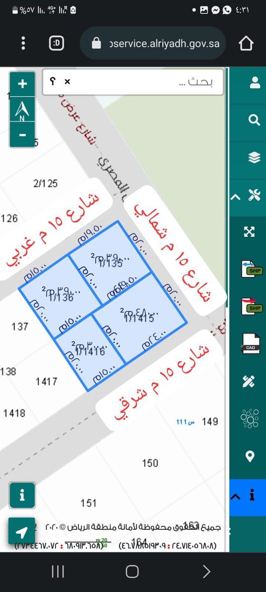 علمًا ان القطع الي في الخلف من مساحات ١٠٠٠م ٢٠٠٠م