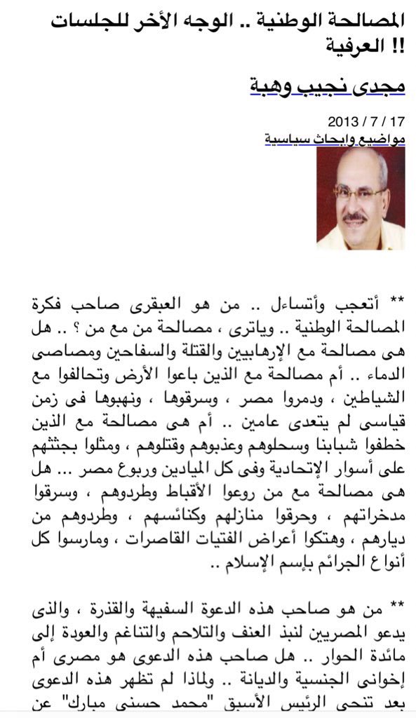 احنا اللي نزلنا بالكنبة في عز ما كان التهديد تحت بيوتنا من ملتوف الاخوان واحنا اللي وقفنا في وش اجرام جماعات بتمولها الصهيونية العالمية بالكلمة لان اللي زينا رافع شعار "#مصر_قضيتي". اوعى تستصغر كلمة بتكتبها في هاشتاج مهما كانت من وجهة نظرك مش بليغة