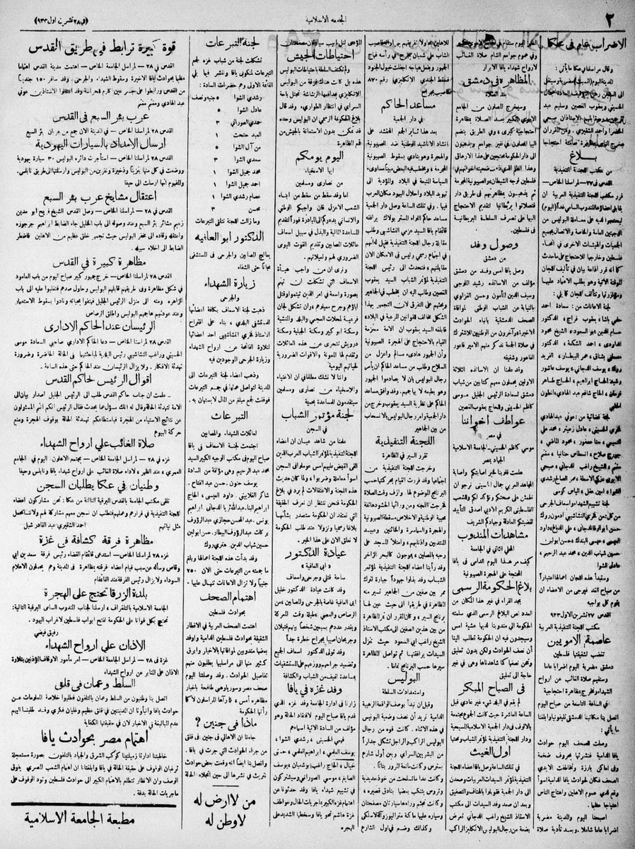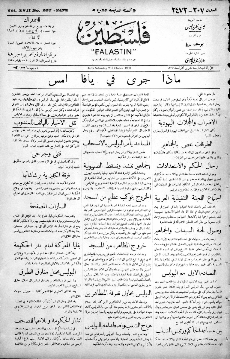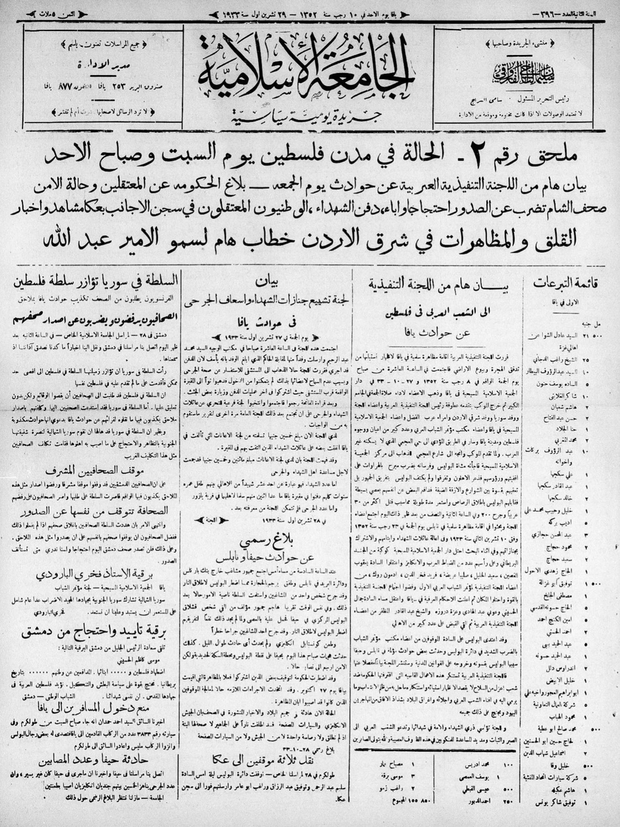 7⃣ عن يوم فلسطين العظيم للاحتجاج على الهجرة وبيوع الأراضي | ١٣ أكتوبر ١٩٣٣..