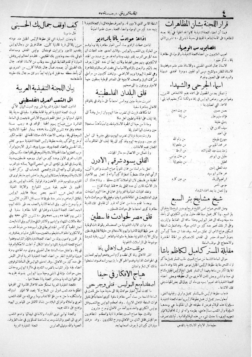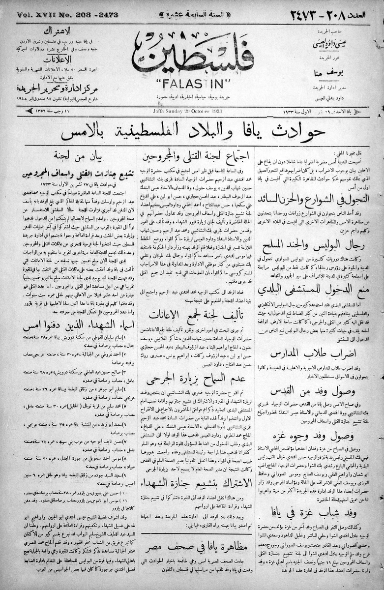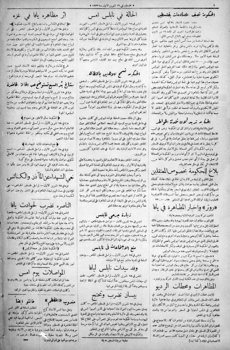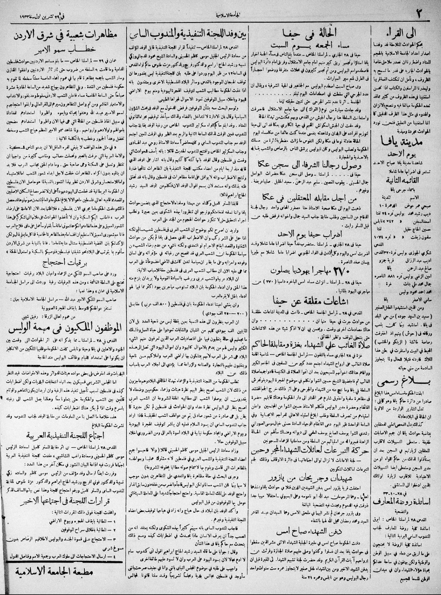 7⃣ عن يوم فلسطين العظيم للاحتجاج على الهجرة وبيوع الأراضي | ١٣ أكتوبر ١٩٣٣..