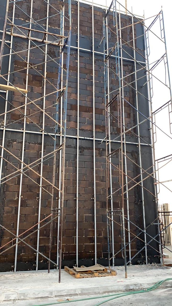 "🛠️ عزل الواجهات بالبيتومين (القار)،قبل تركيب الحجر او الرخام او بعض انواع التكسيات خطوة يغفل عنها الكثيرون لكنها ضرورية جداً في عملية البناء.