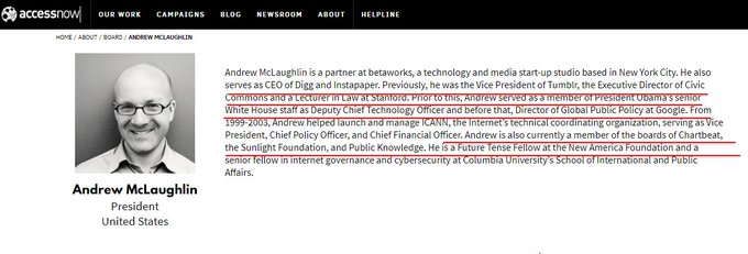 16. Andrew McLaughlin: A one-time Deputy CTO at the White House in Barak Obama's tenure serves as a board member of another #Soros-funded nonprofit "Sunlight Foundation," which has board members also on the board of "Wikimedia Foundation" which runs wikipedia.com