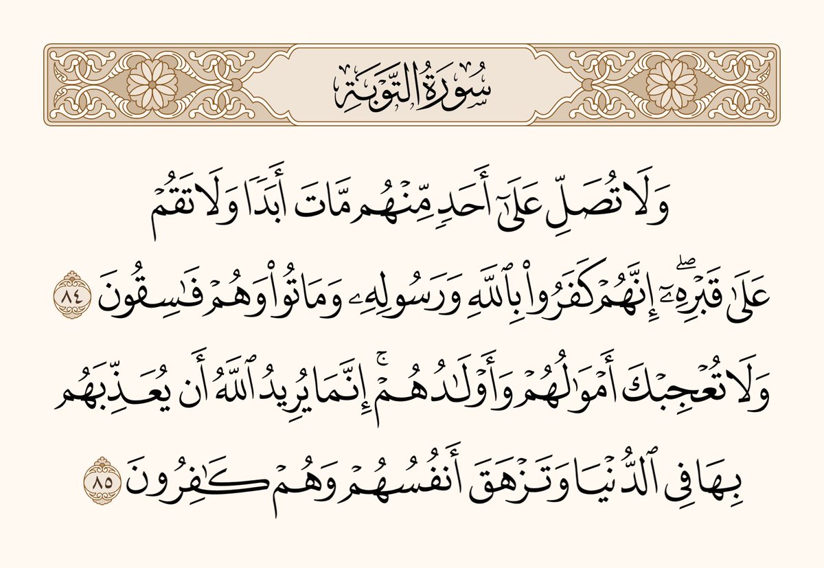 ﴿فَلا تُعجِبكَ أَموَ ٰلُهُم ولا أَولَـٰدُهُم ((إنَّما يُريدُ اللَّهُ لِيُعَذِّبَهُم بِها فِي ٱلحَیَوٰةِ الدُّنيا)) وتَزهَقَ أَنفُسُهُم...﴾