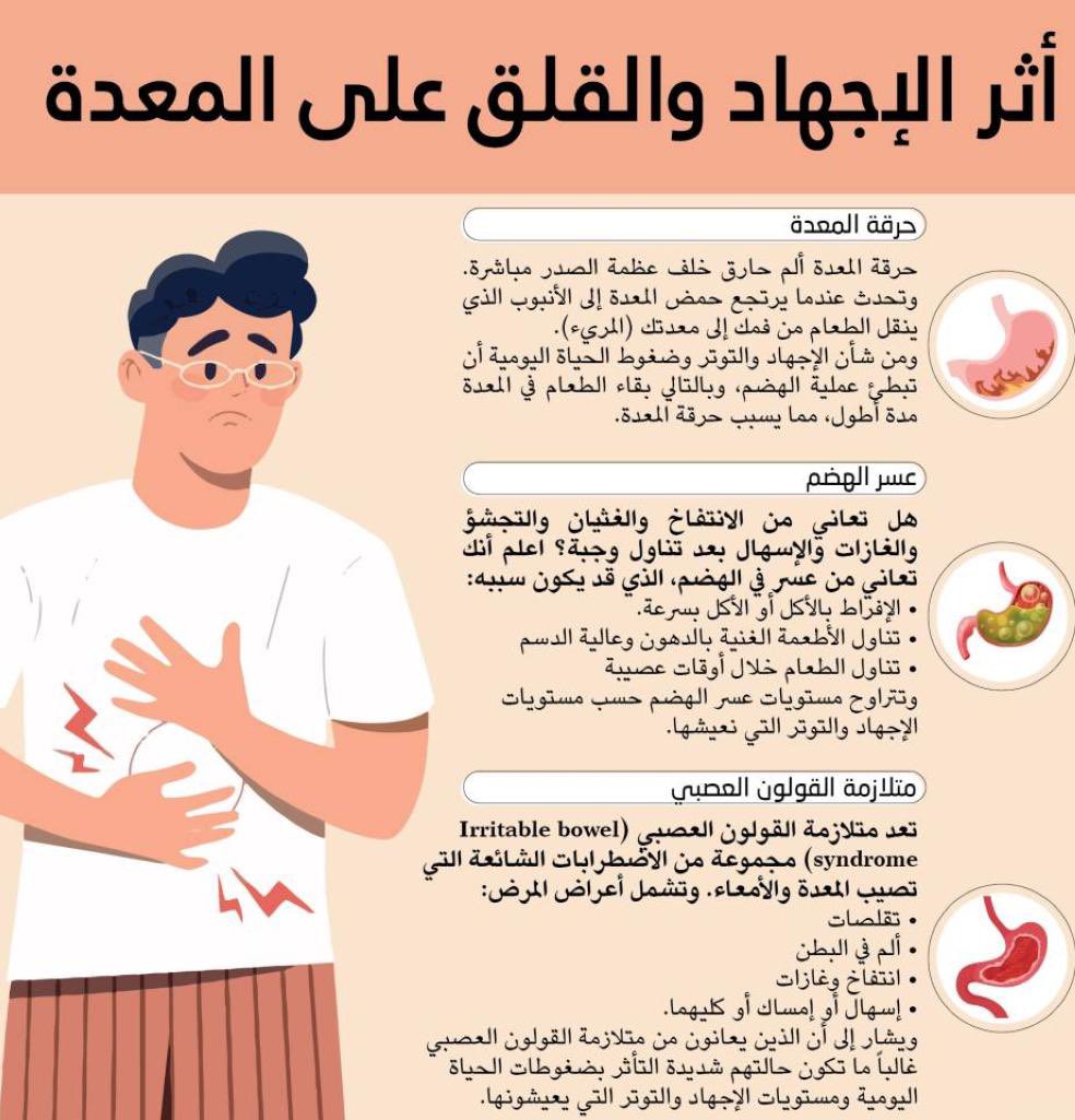أعراض المعدة العصبية مع أعراض الاضطرابات الهضمية الأخرى، إلا أنها عادة ما تحدث عند التوتر والقلق، وفيما يلي نذكر أبرزها: