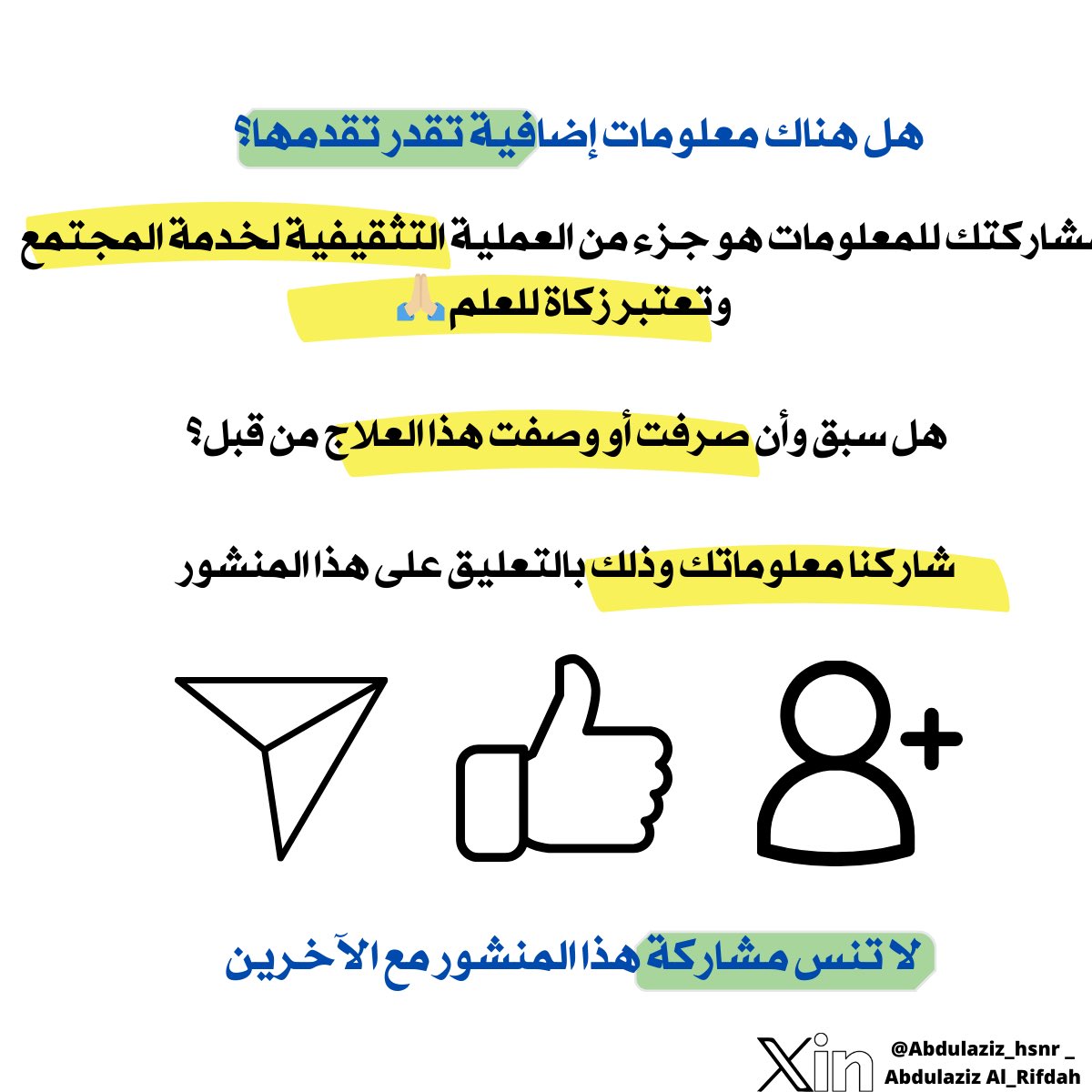 مشاركتك للمعلومات هو جزء من العملية التثقيفية لخدمة المجتمع، هل سبق وأن صرفت هذا العلاج من قبل؟ 👍🏼