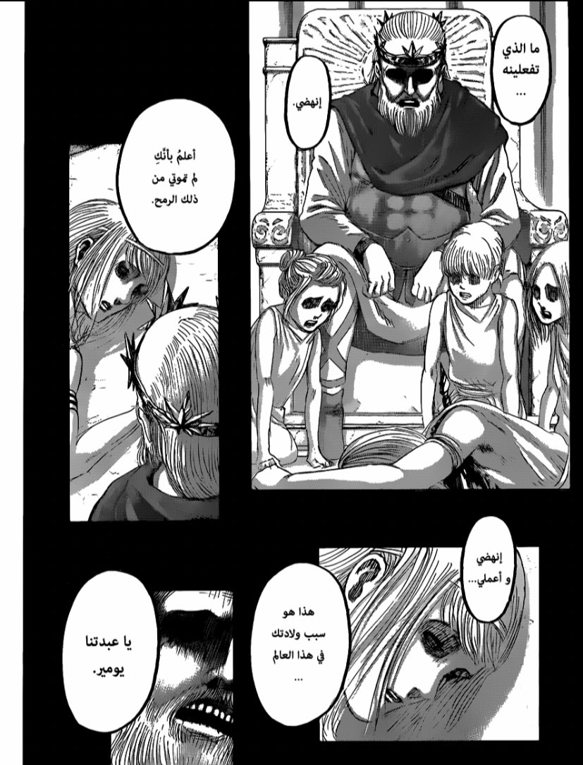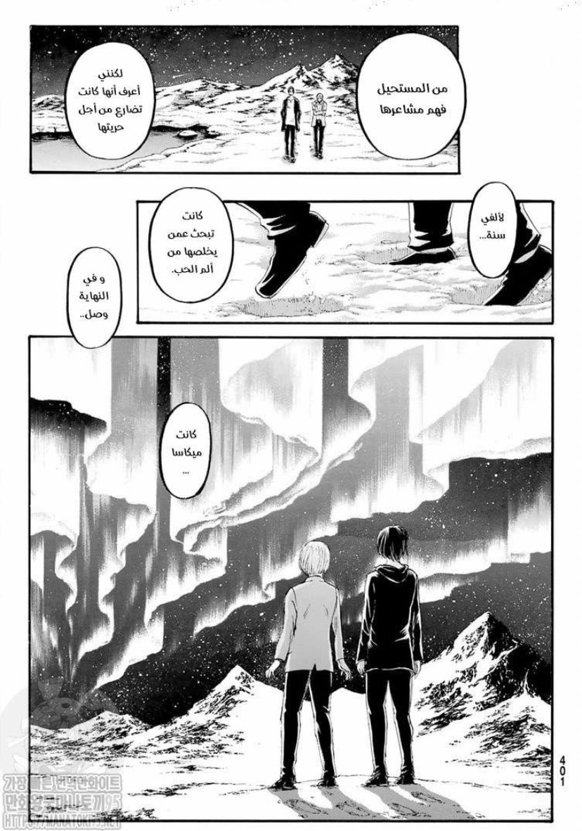 الكاتب أعطى شخصيات النهايات الشنيعة اللي تستحقها كعواقب على أفعالها مثل زيك وإيرين وللأسف لم يفعلها مع كل الشخصيات مثل راينر وآني الذين نالوا نهاية سعيدة كإلتقاء آني بوالدها، عدم مقابلتها له كان سيكون أفضل ويحمل معنى ورسالة بأنك إن سلبت من شخص سيُسلب منك.