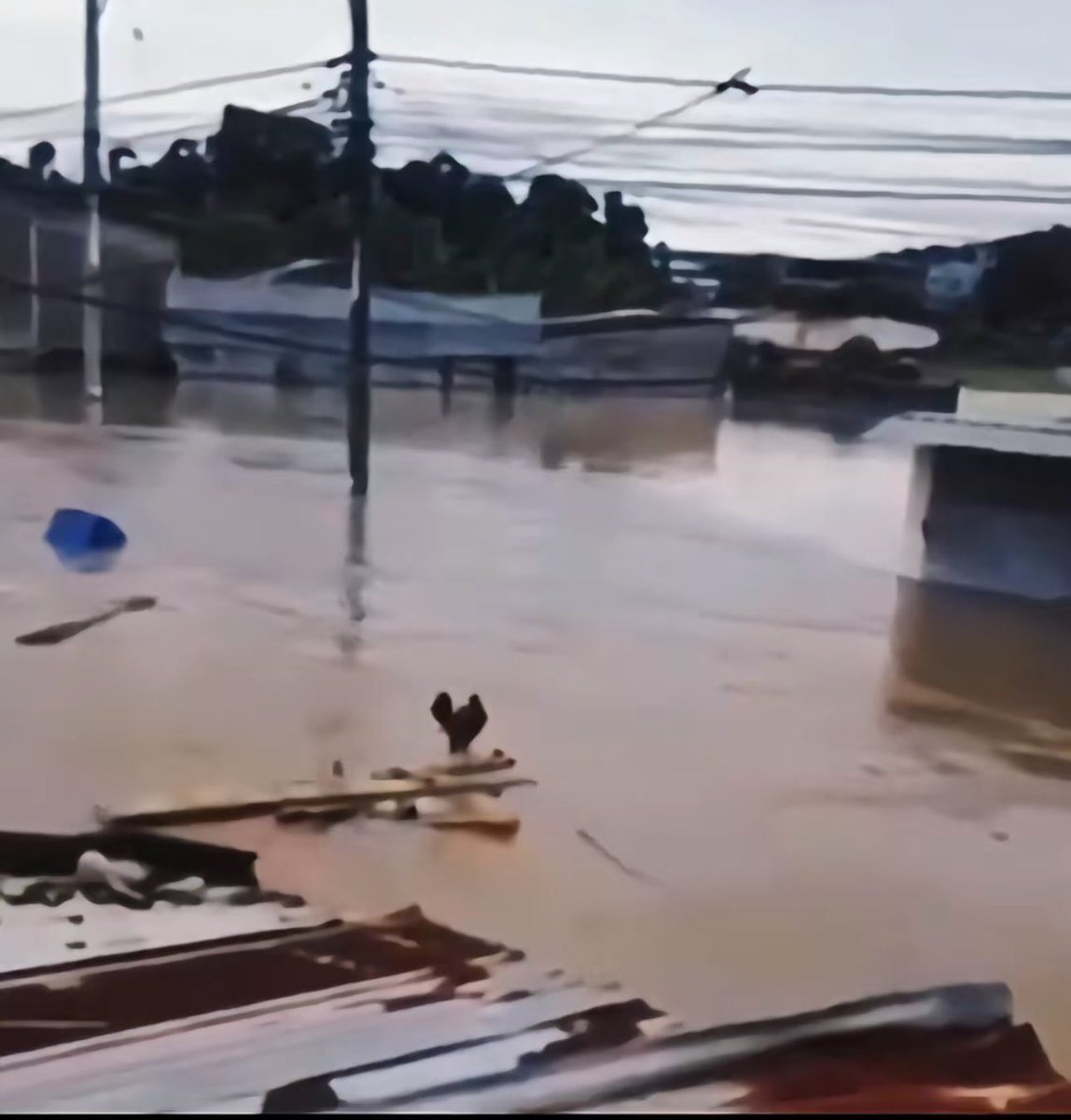 قبل أيام تم تداوم مقطع فيديو لدجاجة تطفو على قطعة خشب يجرفها فيضان ومياه غزيرة وهناك صوت المصور لمقطع الفيديو وهو يقول