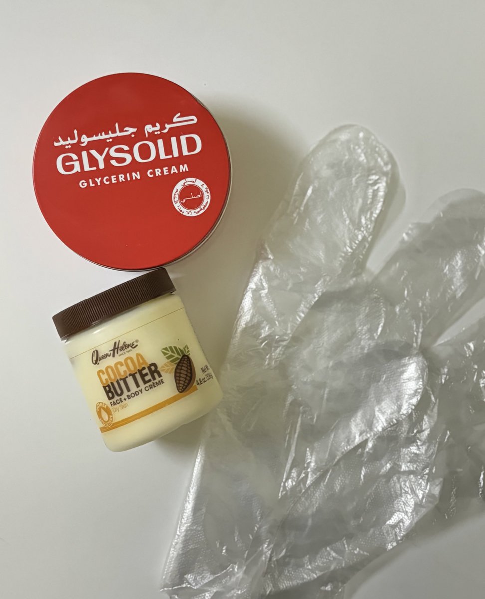الماسك يوحد اللون ويعطي اليدين لمعة ونضارة حلوووووة