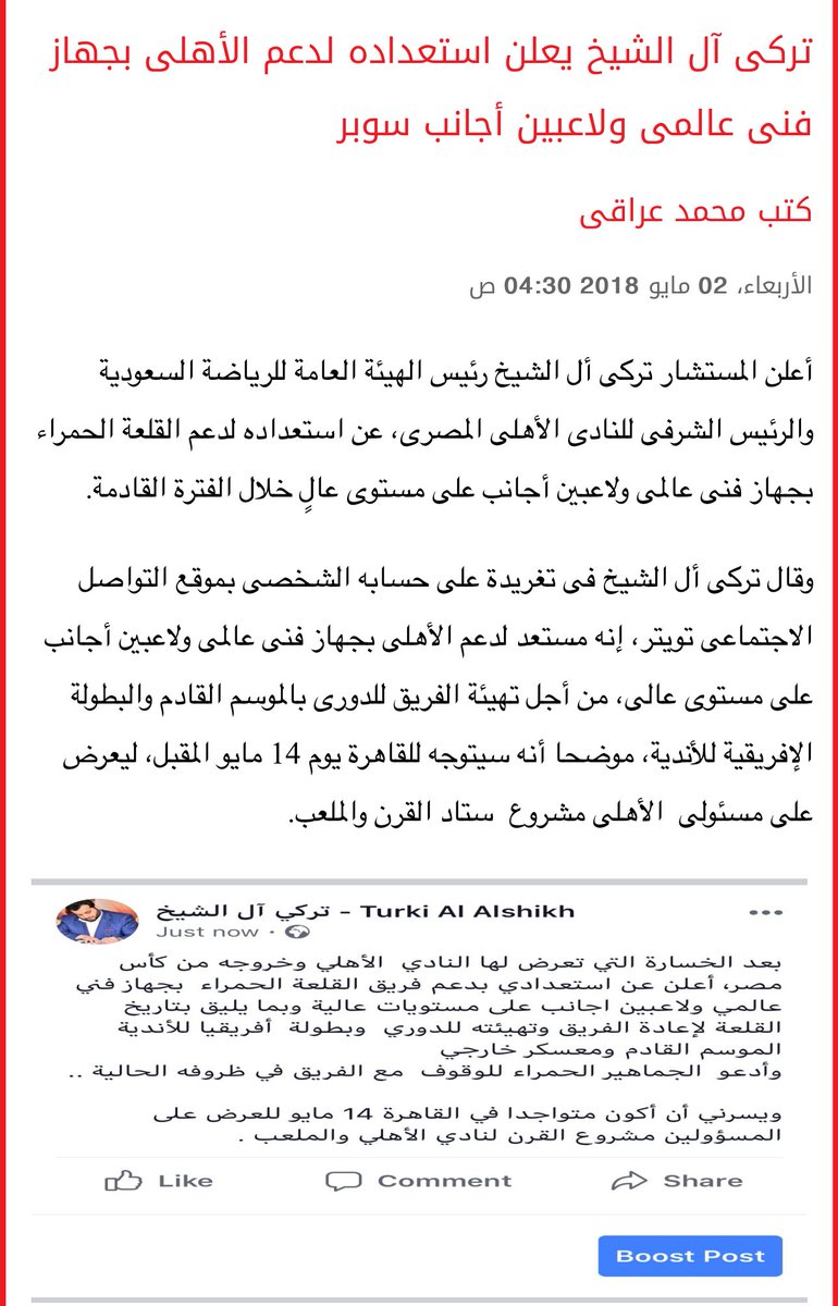 لذلك فإن أي اقتراب من النادي يفهمه النظام المصري على انها بمثابة إعلان حرب، من هنا ومن اليوم الأول وخشية فقدانها السيطرة، لم تتوان هذه الأجهزة عن لعب دور خفي في تأجيج جماهير النادي وجماهير الكرة ضد خطوة ترسيم آل الشيخ رئيساً شرفياً للأهلي، فنشطت حملات التحريض والكراهية ضد آل الشيخ والسعودية وقادت الهتافات الجماهيرية التي تعبر عن اخلاق الاجهزة الامنية المصرية.