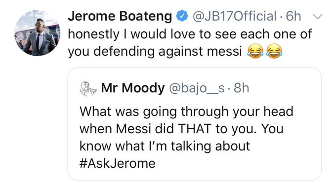 أحدهم سأل چيروم بواتينج : "ماذا كان بيدور في ذهنك وقت ما ميسي فعل فيك ما فعله، انت تفهم ما أقصد"