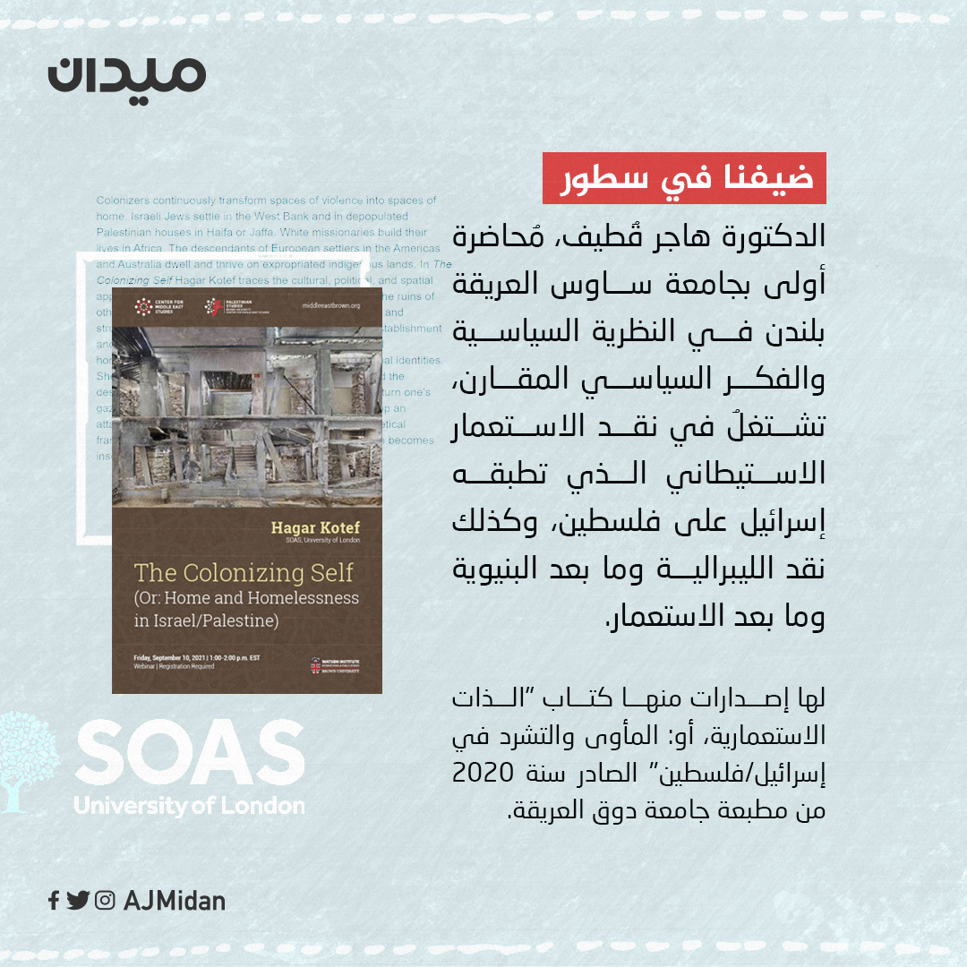 هناك تجذر للعـ.ـنف في الممارسات الاستيطانية الإسـ ـرائيـ لية، وليس في الحرب الحالية وحسب، وينعكس هذا العنف على هوية المستوطن الذي اختلط مفهوم الحميمية عنده مع مفهوم العنف، ولفهم هذا التجذر يسأل #ميدان الأكاديمية بجامعة ساوس (#لندن) #هاجر_قطيف بخصوص كيفية تشكُّل هوية المستوطنين العنيفة.
