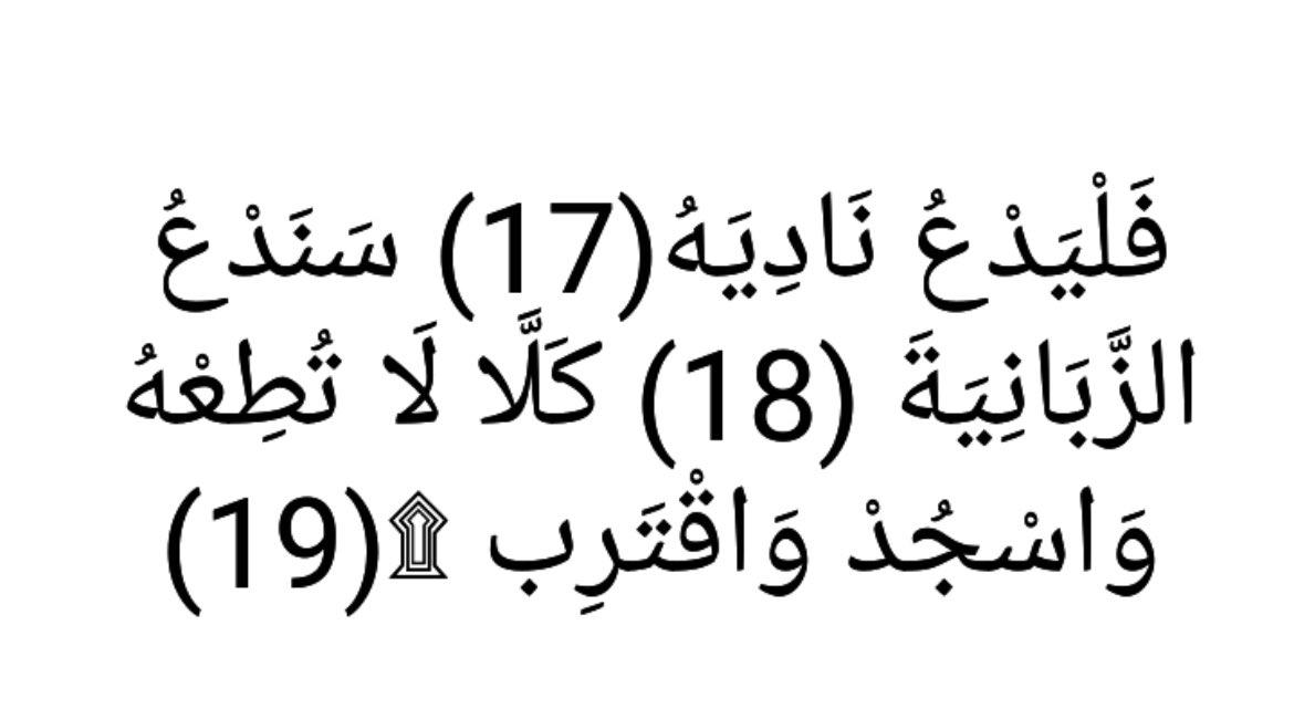 فأغلظ له رسول الله وأخذ يحذره من عذاب الله إن لم يبتعد عن طريقه، وبكل كِبر صرخ أبو جهل على النبيّ وقال له يا محمد، بِأَي شَيء تُهددنِي؟ أَما والله إِني لأَكثر هَذا الوادي ناديا، بمعنى أكثر أهل مكة من المناصرين لي، فتجاهله نبيناﷺ خير البشر وأشجعهم وتوجه لموضع صلاته أمام الكعبه.