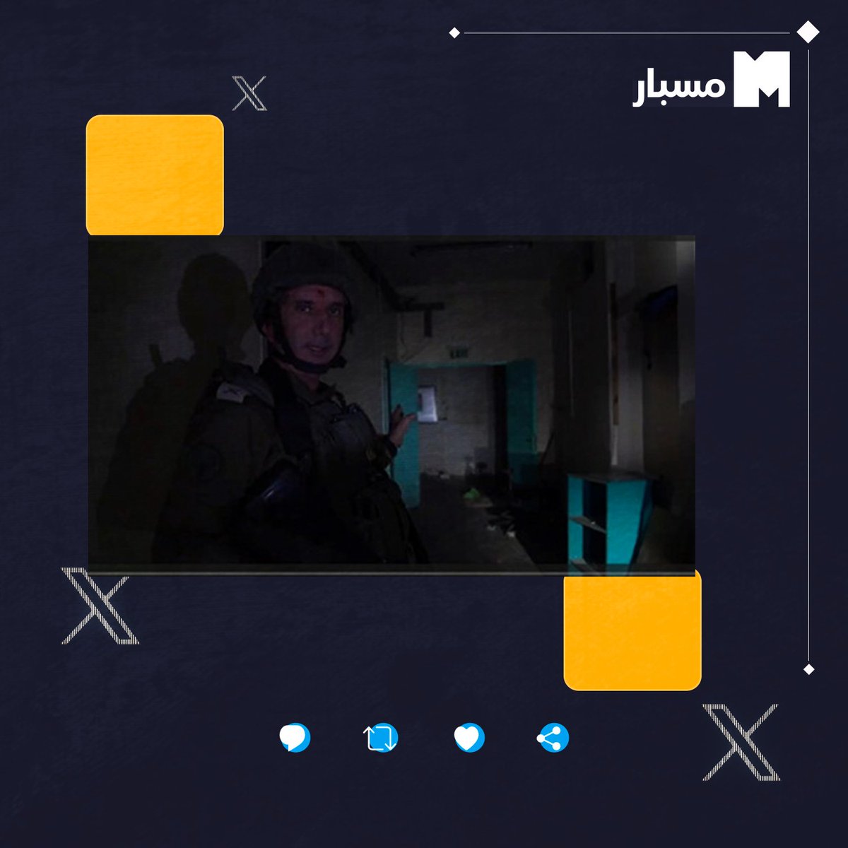 يدّعي المتحدث باسم الجيش الإسرائيلي، دانيال هاغاري، أنه يقف أمام منزل لأحد "الإرهابيين"، بينما تشير اللافتة على المبنى خلفه إلى معهد تعليمي يقع مقابل #مستشفى_الرنتيسي.