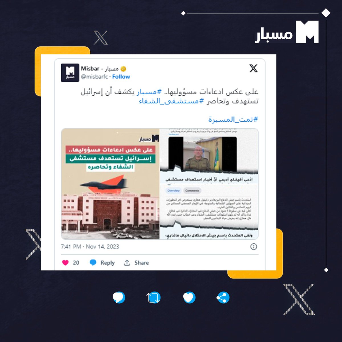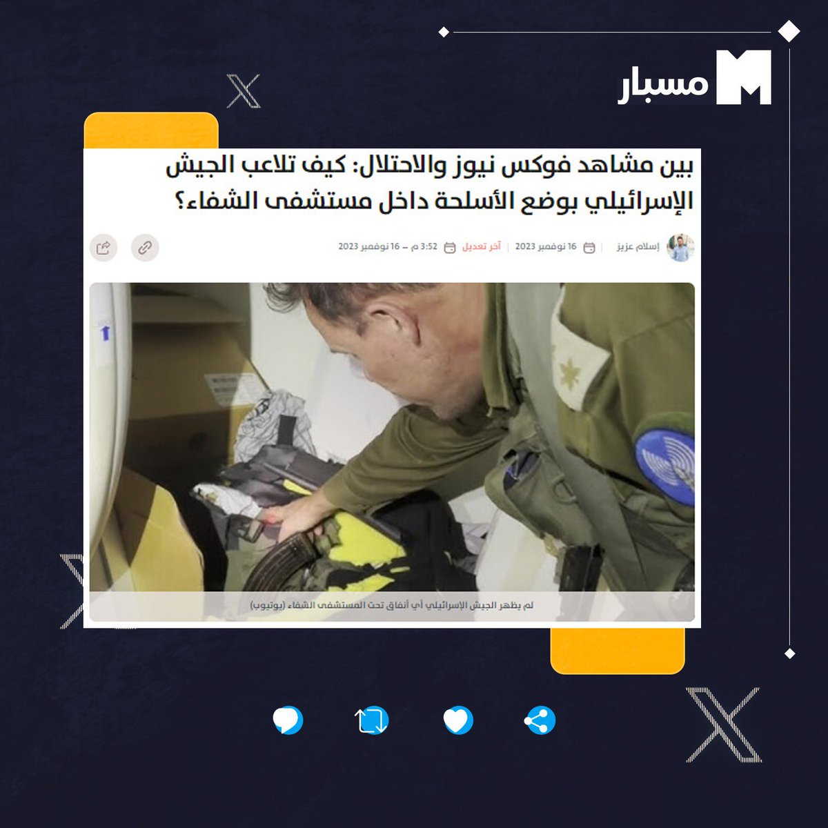 🔵 وسبق وفند #مسبار الادعاءات الإسرائيلية بعد اقتحام مستشفى الشفاء، وعرض الأدلة الهشة التي نشرتها قوات الاحتلال وادعت فيها وجود مسلحين داخل المستشفى.