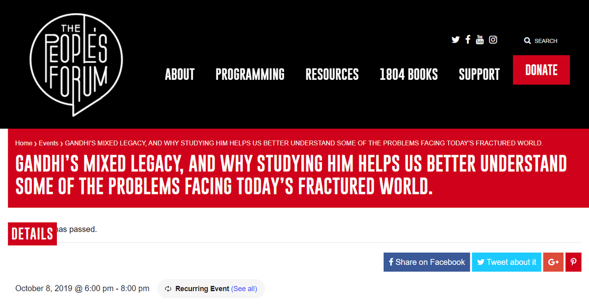 In October 2019, the People's Forum held a seminar on Mohandas Karamchand Gandhi and seized the opportunity to attack Hinduism under the pretext of condemning ‘Hindutva’.