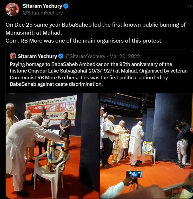 ‘The People’s Forum’ also endorsed a book on Communist leader Ramchandra Babaji More, who organised the public burning of the Hindu religious text #Manusmriti’ on December 25, 2027 at Mahad city in Raigad district of Maharashtra.