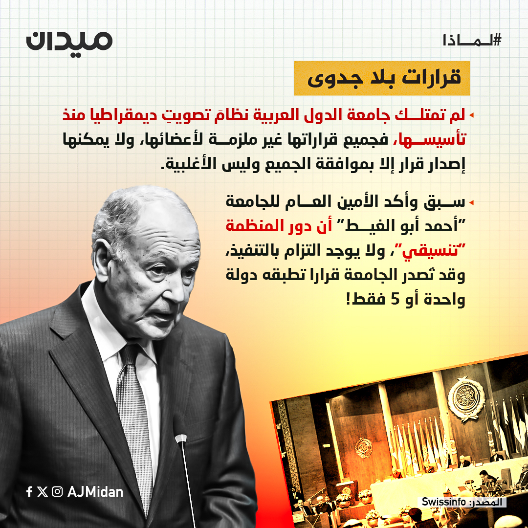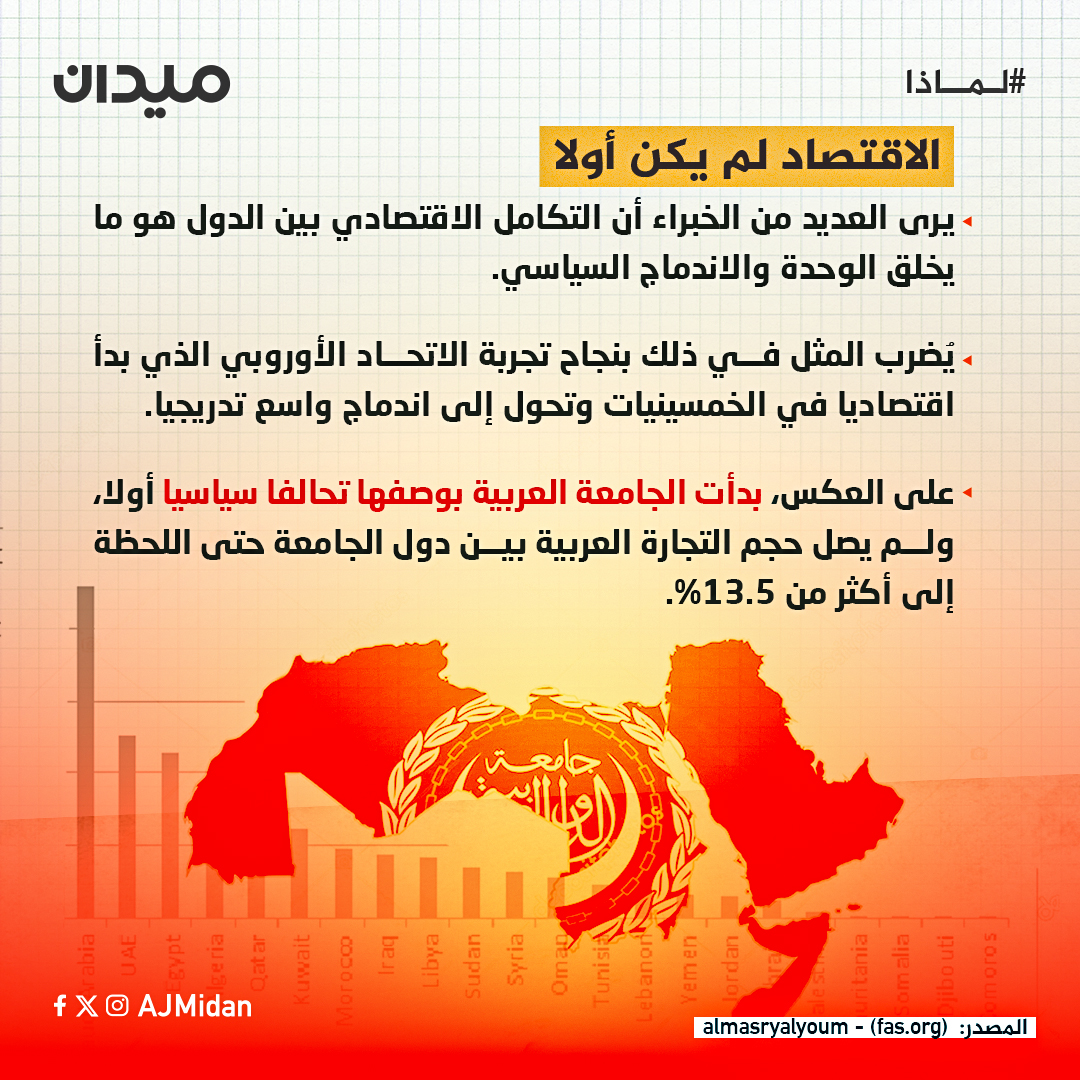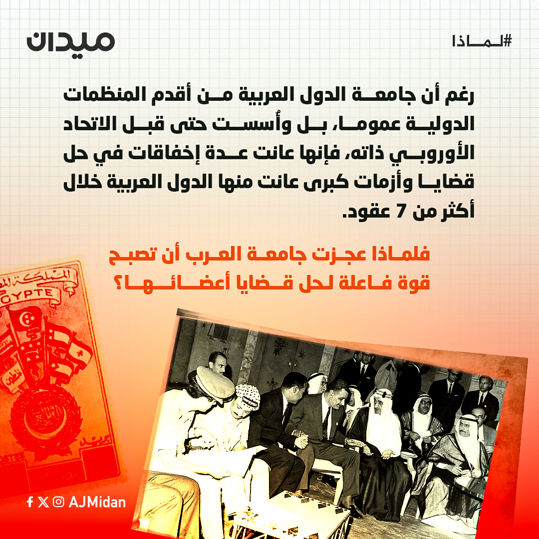 بدأت في منتصف أربعينيات القرن الماضي -قبل تأسيس #الاتحاد_الأوروبي- بطموح أن تكون منظمة جامعة للعرب وموحدة لكلمتهم وجهودهم، وانتهى بها الحال -حسب آراء العديد من المحللين- إلى مجرد واجهة من المؤسسات غير الفعالة، تخفي وراءها العديد من الانقسامات الحادة بين أعضائها، وغير قادرة على إحداث أي تأثير في قضايا الأمة، فلماذا كان هذا الإخفاق؟