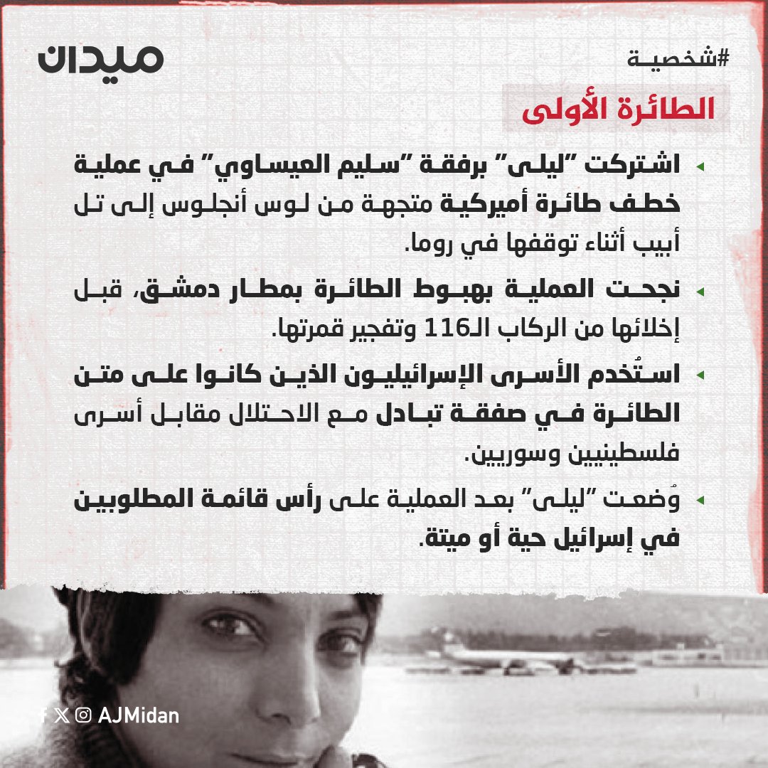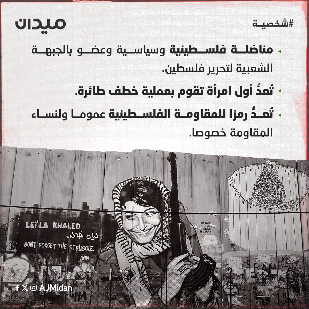 أصبحت صورتها رمزا للمـ..قـ..اومـ..ة وللـ..قـ..ضـ..يـ..ة الفـ..لسـ..طـ..ينيـ..ة، رُسمت على الجدار العازل، وكُتب عنها العديد من المؤلفات، مَن هي “ليلى خالد” الأيقونة؟