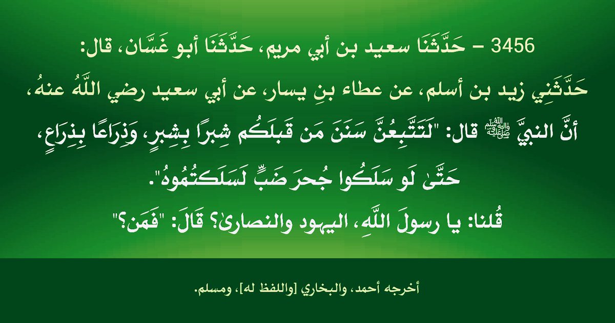 وللعلم توجد أمور كثيرة تبعوهم بها يشهد عليها الواقع بعضها مذكور في الوحي والآخر لا، وأعيد أن هذه السلسلة لِنرى أفعال اليهود والنصارى في القرءان والحديث، والتطابق العجيب بين [أهل الكتاب😊] وأهل السُنَّة، وصِدق حديث النبي ﷺ بِهم، وتذكير لِئَلَّا نتَّبعهم،