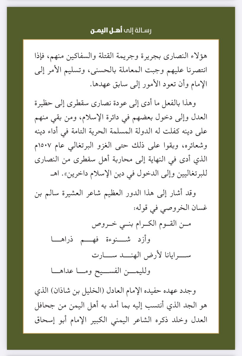 مفتي سلطنة عمان الشيخ أحمد الخليلي@AhmedHAlKhalili يوجه رسالة إلى أهل اليمن