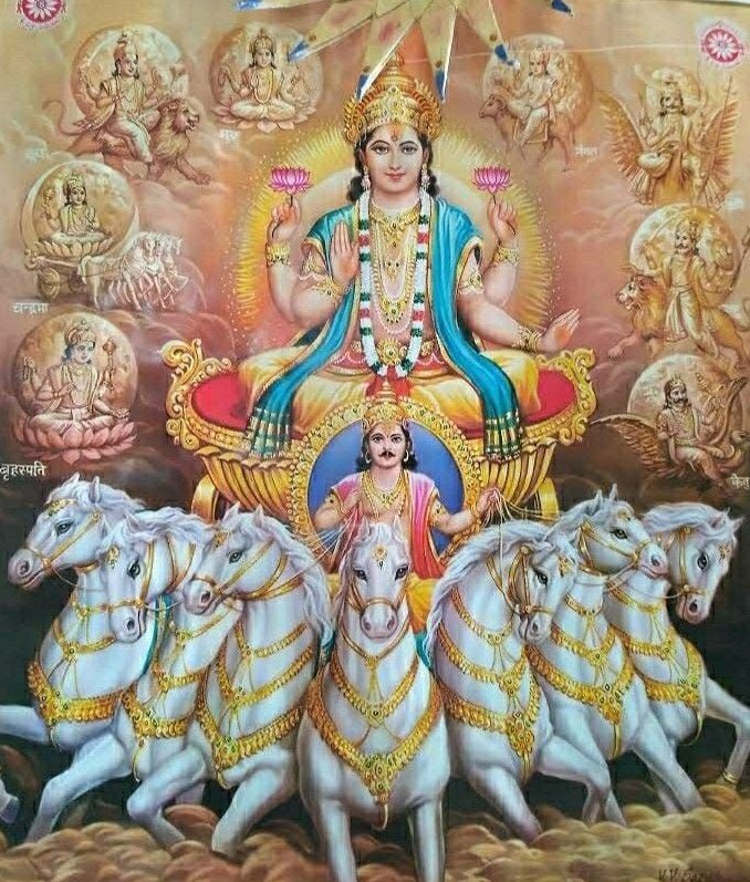 💮8. ऋग्वेद में कहा गया है- ‘सप्तयुज्जंति रथमेकचक्रमेको अश्वोवहति सप्तनामा’ यानी सूर्य चक्र वाले रथ पर सवार होते हैं, जिसे 7 नामों वाले घोड़े खींचते हैं।