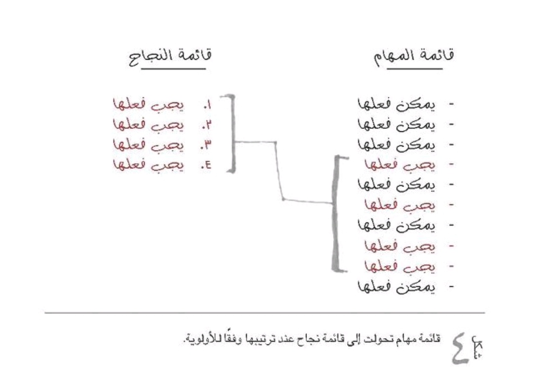 والفرق بين قائمة المهام وقائمة النجاح هو ان -الاولى طويلة، أما الثانية فهي قصيرة