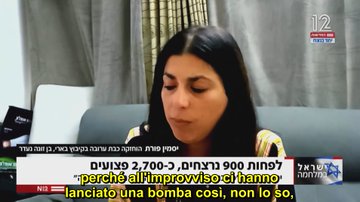 In altra intervista, accenna a "bombe incendiarie" lanciate dalle Forze Armate israeliane, ma è subito interrotta dalla giornalista
