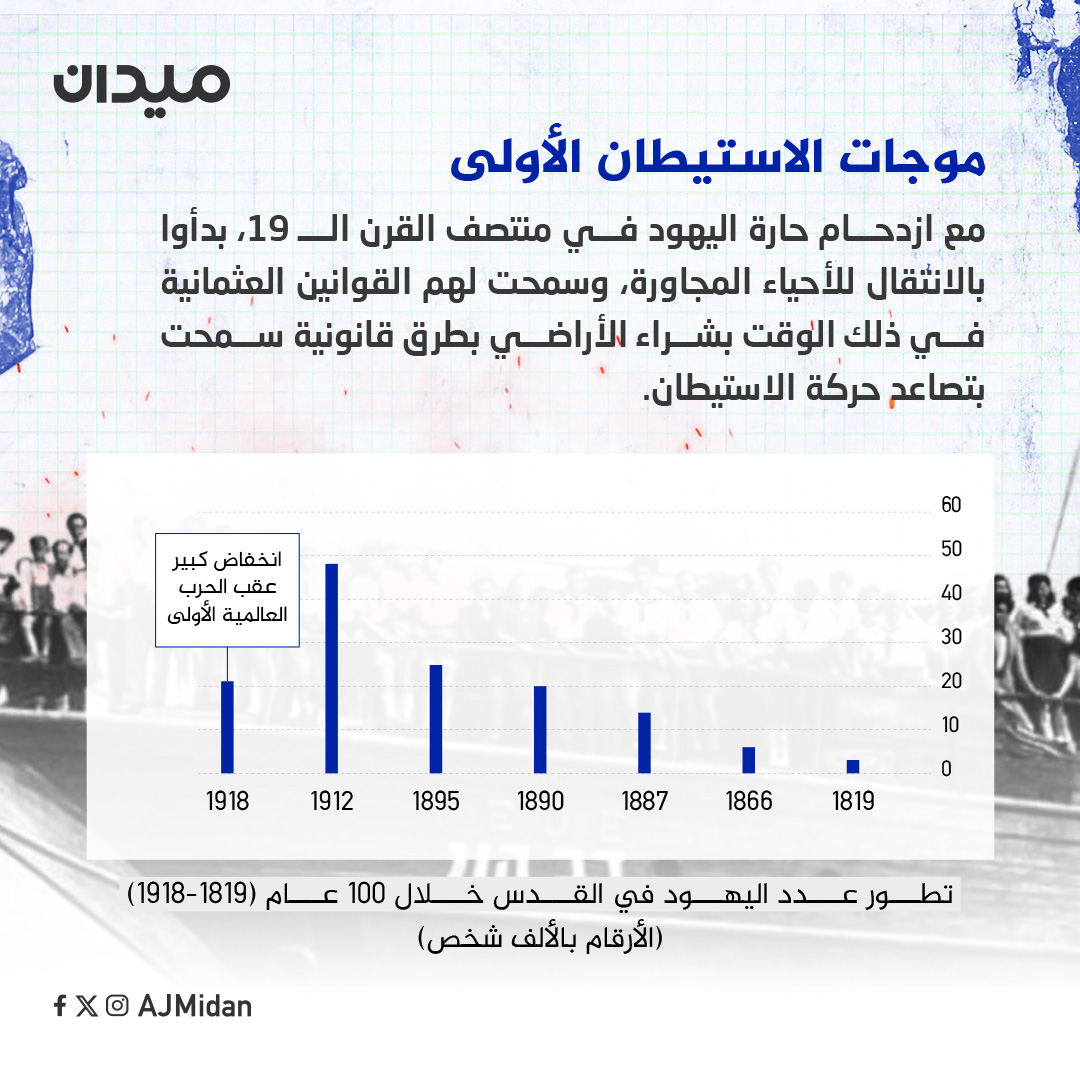 منذ القرن الـ 19 يسعى أصحاب القرار والمخططون الإستراتيجيون في إسـ ـرائـ ـيل إلى خلق هيمنة ديموغرافية مطلقة في القـ ـدس.. تعرف على أوضاع اليـ ـهـ ـود في القدس قبل الاستيطان، ومراحل تاريخ استيطانهم، وكيف تمكَّنت سياسات إسـ ـرائـ ـيل من تغيير المعادلة الديموغرافية للمدينة لصالح المستوطنين؟