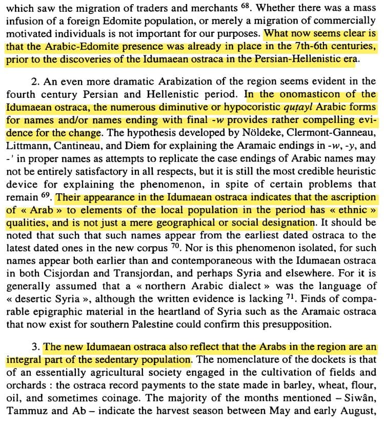 وقد كان العرب الأدوميين يشكلون الأغلبية الساحقة من سكان جنوب فلسطين.