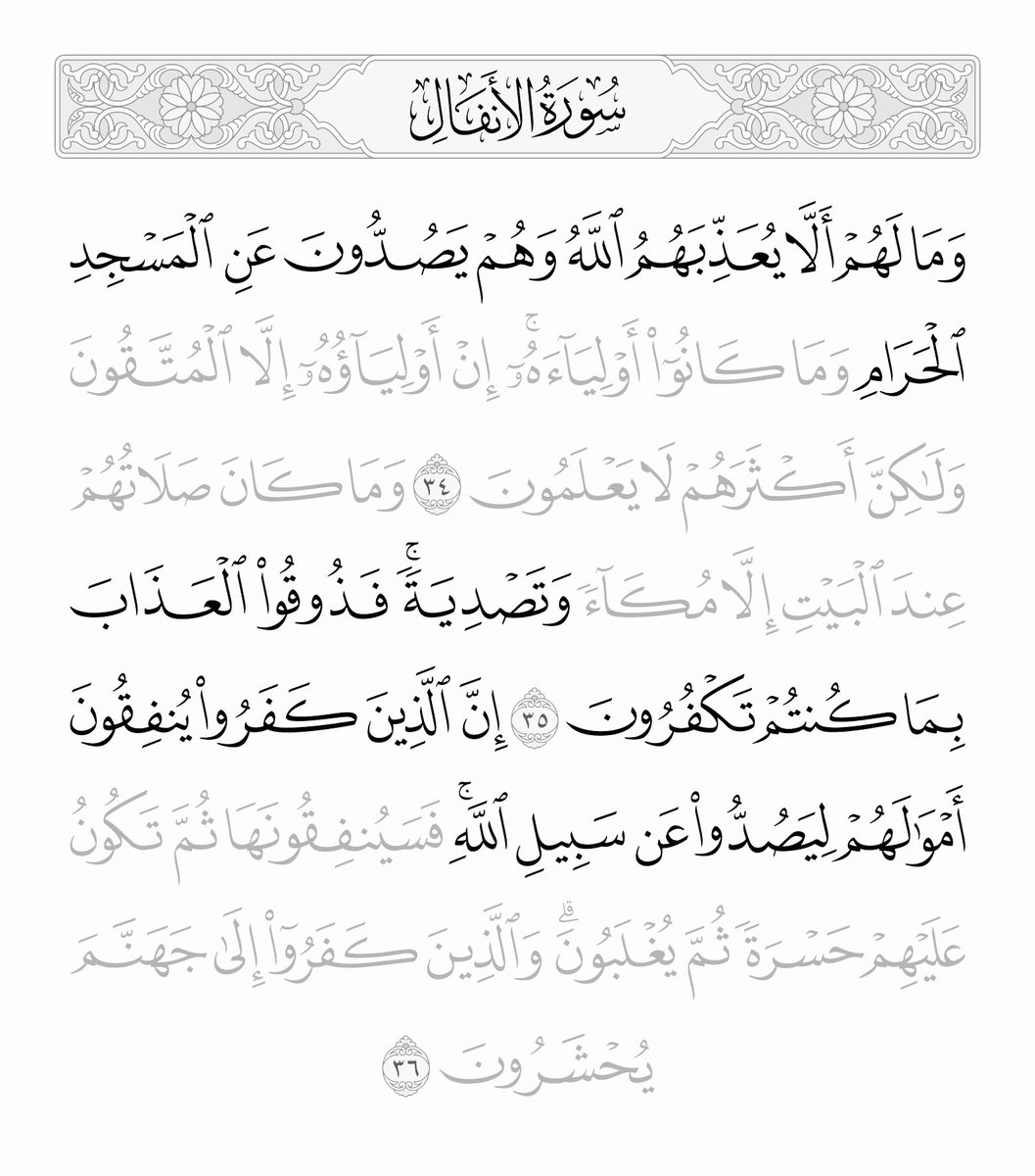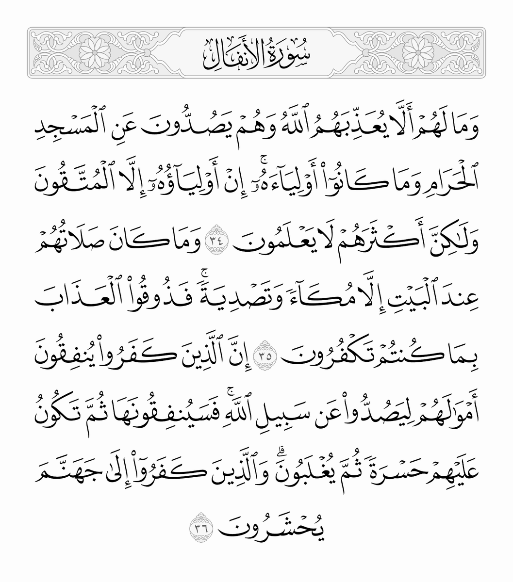 ﴿وَما كانَ صَلاتُهُم عِندَ البَيتِ إِلّا مُكاءً وَتَصدِيَةً فَذوقُوا العَذابَ بِما كُنتُم تَكفُرونَ﴾ [٣٥]