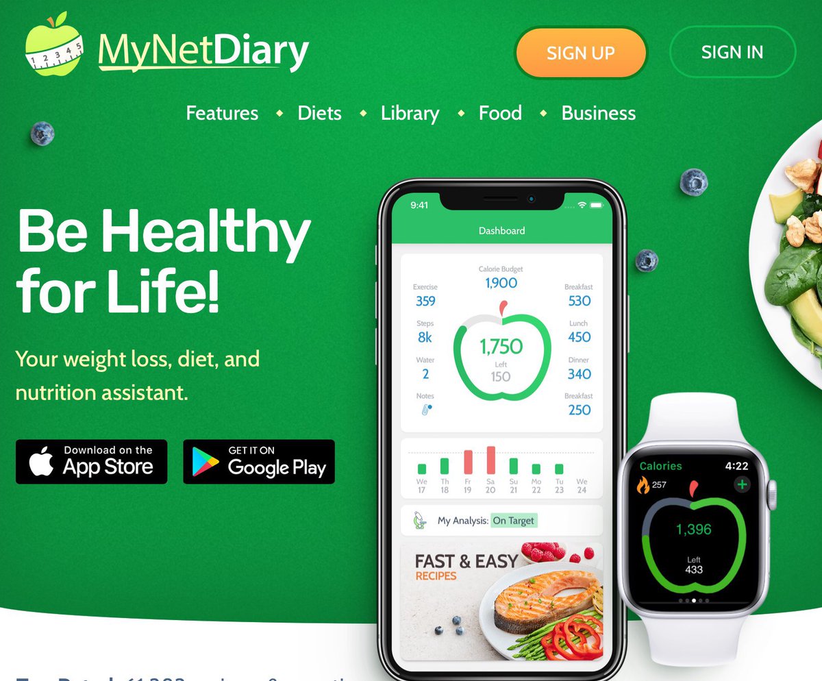 (MyFitnessPal) الذي يتتبع السعرات الحرارية والمغذيات الدقيقة والكبيرة، ولديه أيضًا وصفات مجانية ومقالات صحية