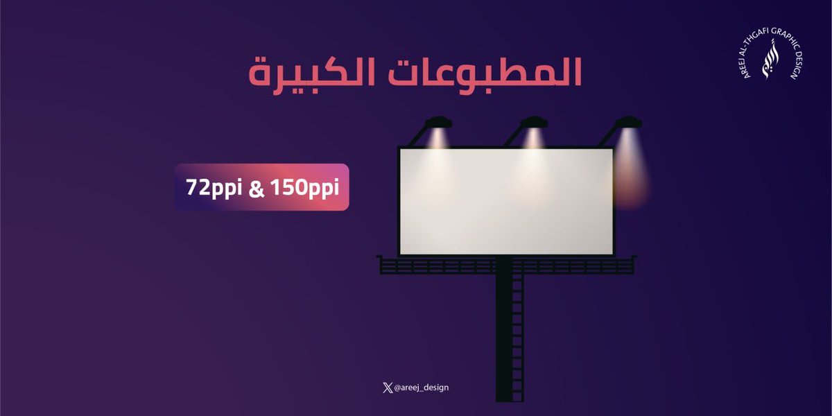 🟣 المطبوعات الكبيرة مثل اللوحات الإعلانية الكبيرة والرول اب والبنرات وأي تصميم بعيد عن العين نستخدم فيه دقة الـ 72ppi و 150ppi طيب متى استخدمهم ؟