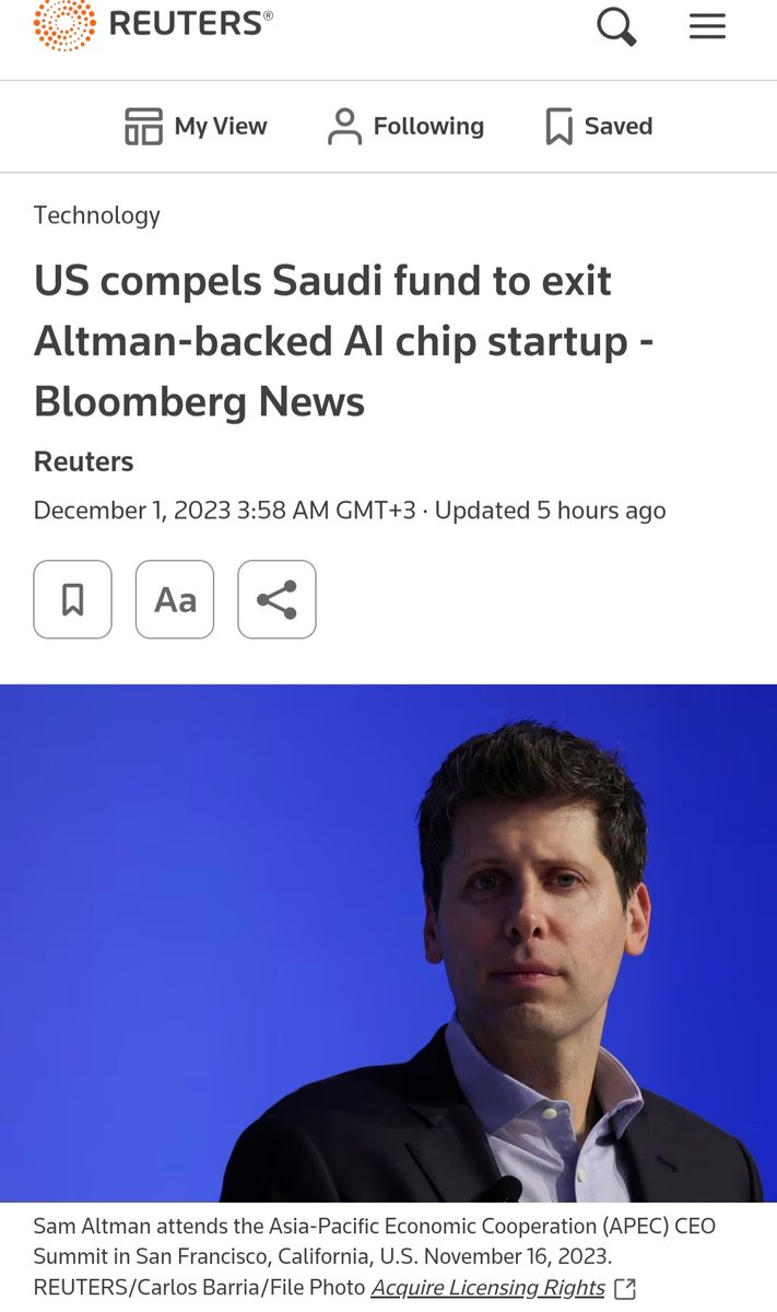 ضجت الصحف العالمية بخبر "اجبار" إدارة الرئيس الامريكي لصندوقا سعوديا على بيع أسهمه في إحدى شركات رقائق #الذكاء_الاصطناعي الناشئة الامريكية.