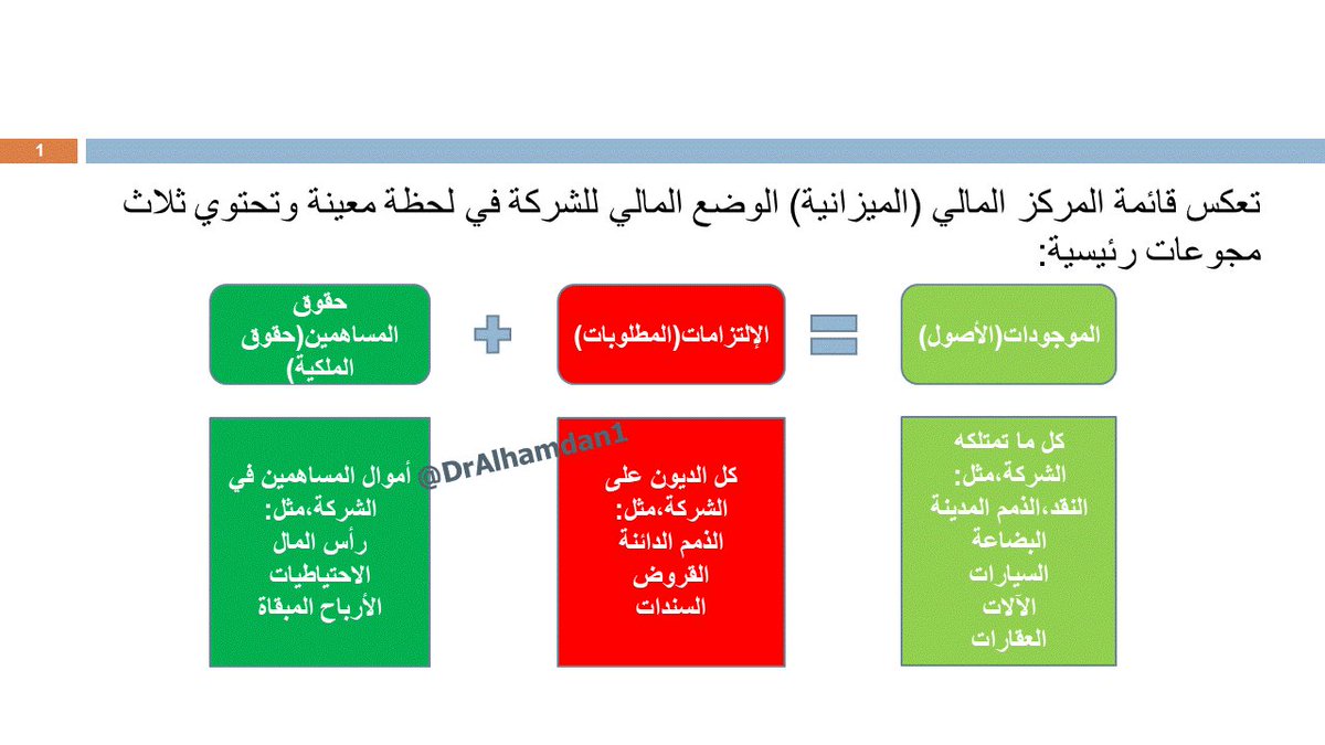 المركز المالي للشركة يُبين في لحظة محددة ثلاث مكونات رئيسية: