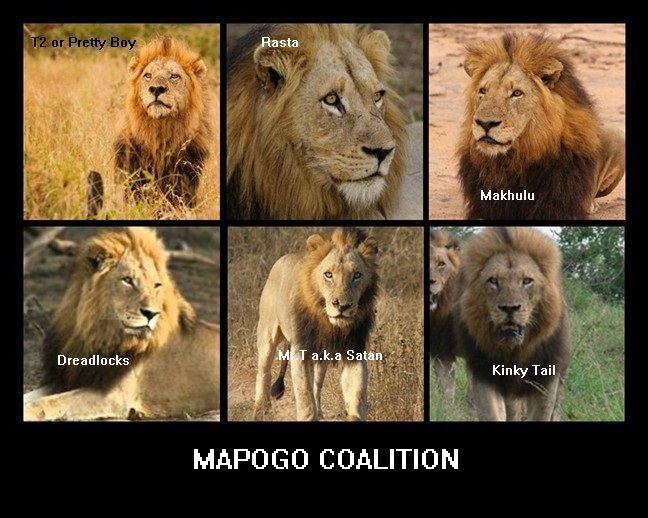 أطلق اسم مابوغو على هذه الزمرة التي كانت تضم 6 أسود ولا يوجد فيها إناث فكانوا يدخلون إلى أراضي الأسود الأخرى ويطردونها ويستولون على الإناث ويقتلون الأشبال فاستطاعوا أن يقتلوا أكثر من 100 أسد مسيطر