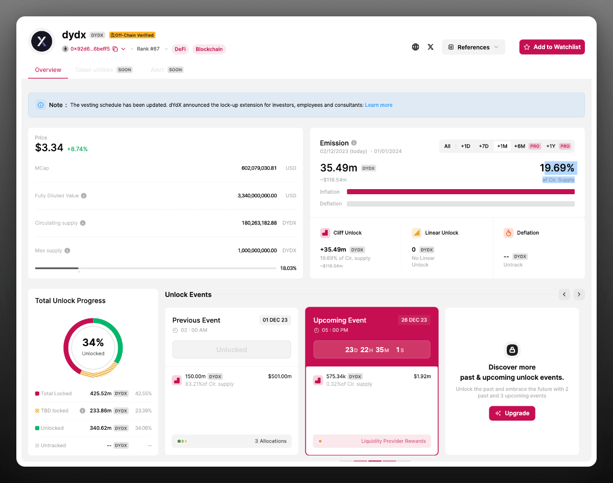 For instance, $DYDX'll unlock 3.2% in 16 days.