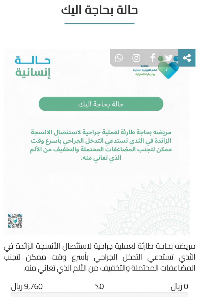 حالة حرجة مبلغها بسيط وقادرين عليه بدعمكم راح نقفلها بإذن الله والله يكتب اجرنا واجركم يارب 🖤👏