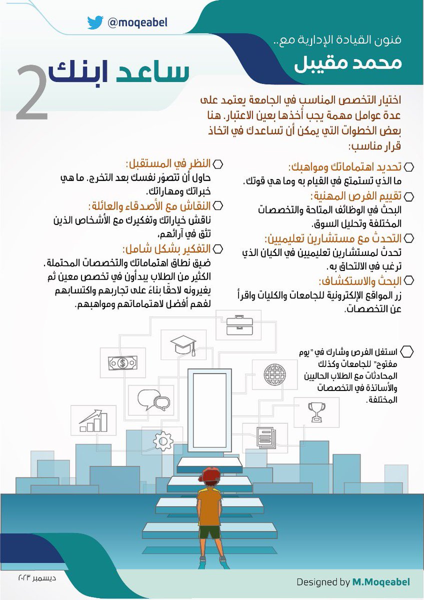 📖 اختيار التخصص المناسب لابنك في الجامعة يعتمد على عدة عوامل مهمة يجب أخذها بعين الاعتبار. هنا بعض الخطوات التي يمكن أن تساعدك في اتخاذ قرار مناسب: