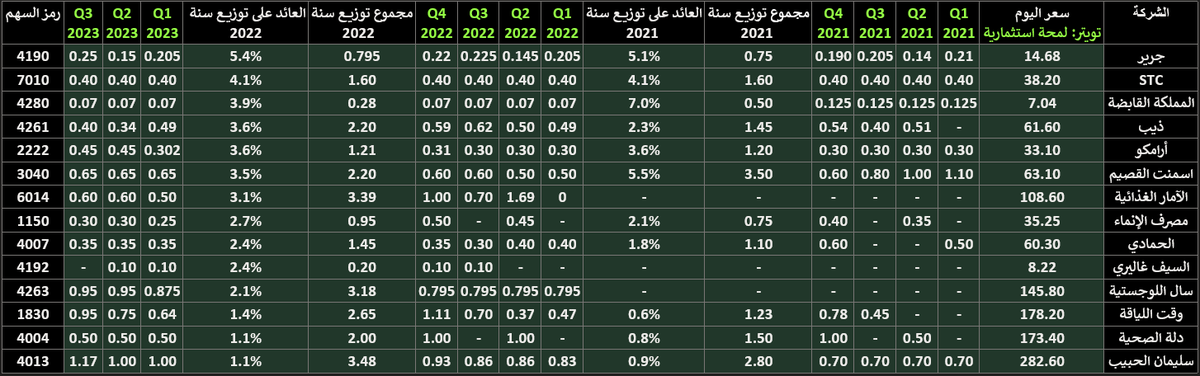 تحت هالتغريدة الاسهم التي توزع ارباح بشكل ربع سنوي