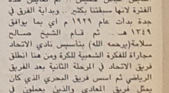 ففي كتاب موسوعة نادي الاتحاد ذكر أن ألمؤسسين أخبروه أن الاتحاد تاسس عام 1347.