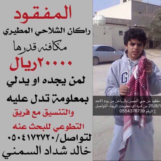 في 1438هـ وتحديدا يوم 25/08 خرج شاب بعمر 18 سنة تقريبا من بيت والدته ومنذ ذلك اليوم لم يظهر له أثر ولم يسمعوا عنه أي خبر .. قصة مفقود حي الجبس الغريبة الشاب راكان