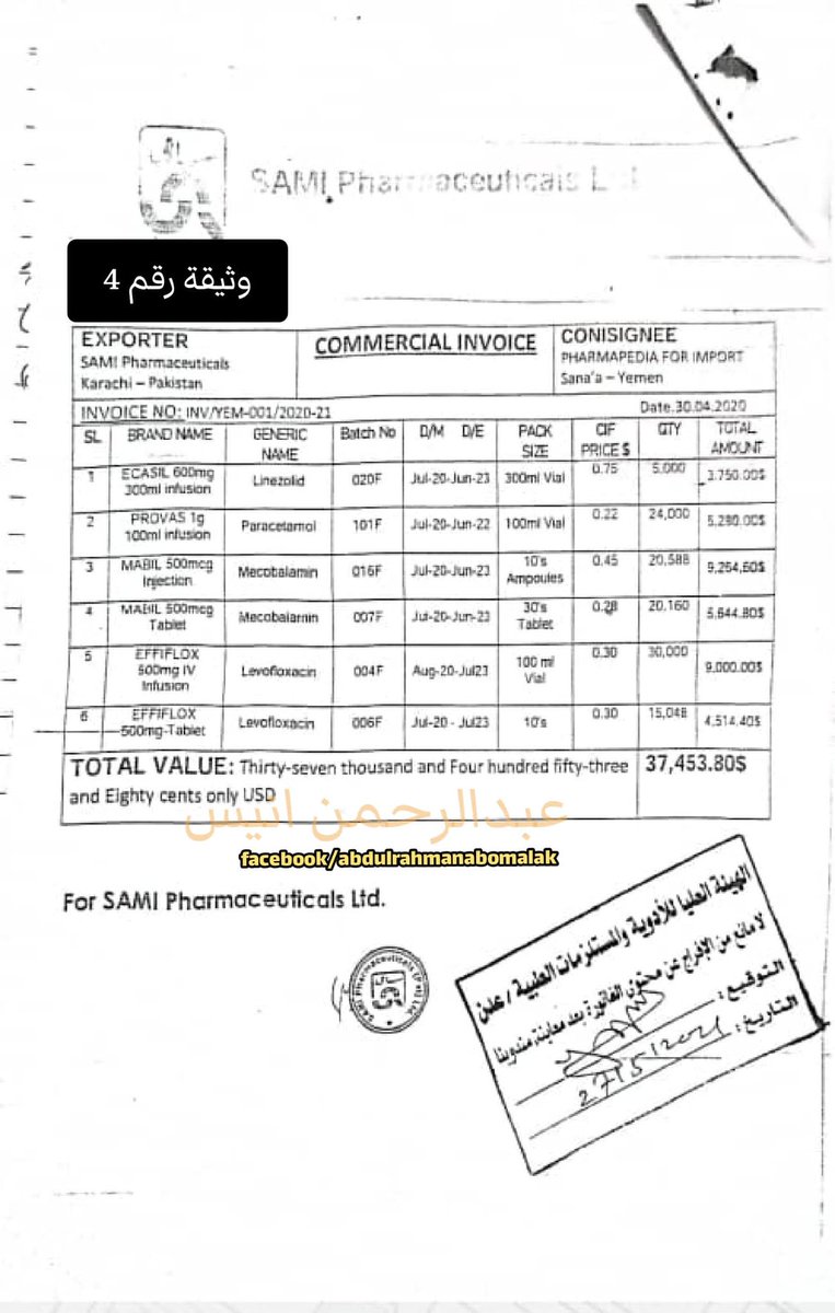 كانت تلك الشحنة مملوكة لشركة ( فارما بيديا ) للاستيراد. "انظر الوثيقة رقم 1".