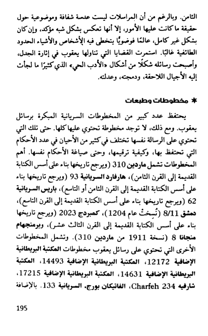-رسائل بعقوب الرهاوي: أقدم مخطوط يعود للقرن الثامن ميلادي
